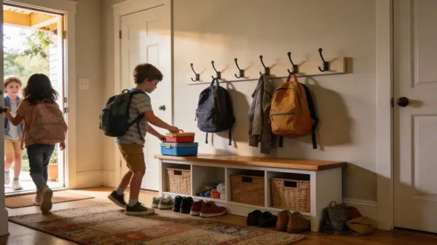 That’s it. No homework yet. No chores list. Just breaking the habit of dropping everything in the doorway.