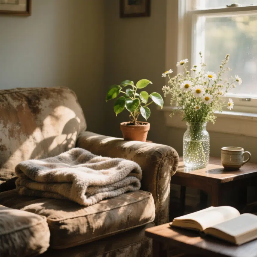 The honest advice is to start with one room, not the whole house. Pick the space you spend the most time in or the one that bothers you the most when you walk past it. Do the light. Wash the textiles. Clear the surfaces. Add one living thing. Move one piece of furniture. That’s a refresh that costs maybe $20 and an afternoon. Fixing builder-grade eyesores in a weekend takes this further if you want to tackle the things that have been quietly bothering you since you moved in. But the basics work, they cost almost nothing, and they’re available to you right now without waiting for the perfect day, the perfect budget, or the perfect version of your home.